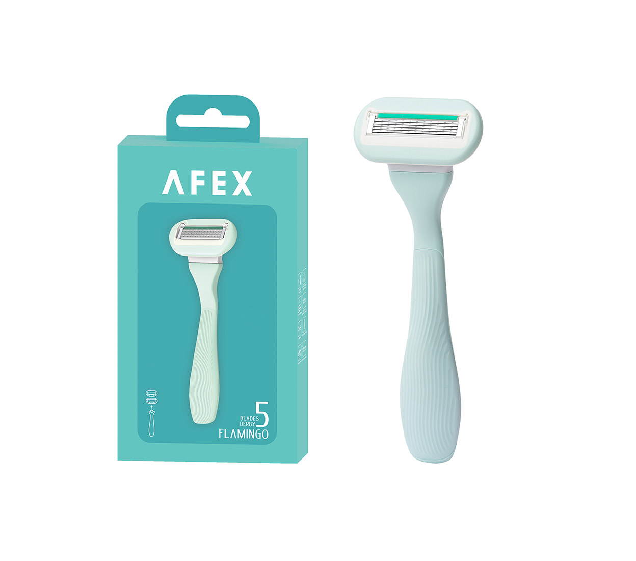 افکس فلامینگو سبز دارای: تیغه ی 5 لبه استیل ضد زنگ، نوار روان کننده حاوی ویتامین E و آلوورا ، سری متحرک قابل تعویض، سری متحرک قابل تعویض، قاب مسافرتی